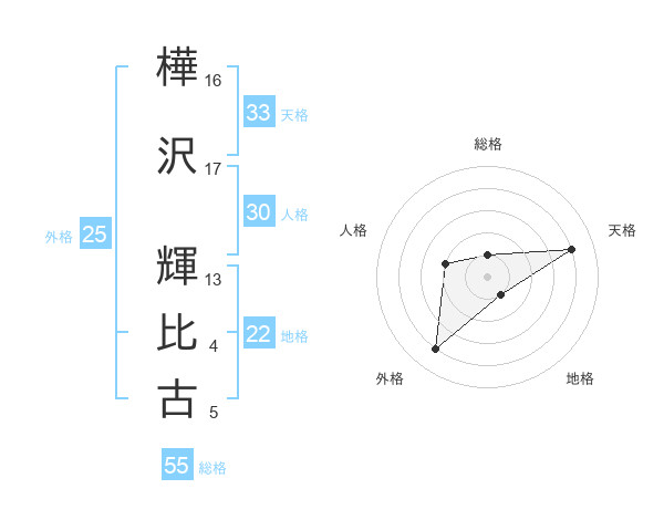 樺沢 輝比古さんの総格は55画の1点!