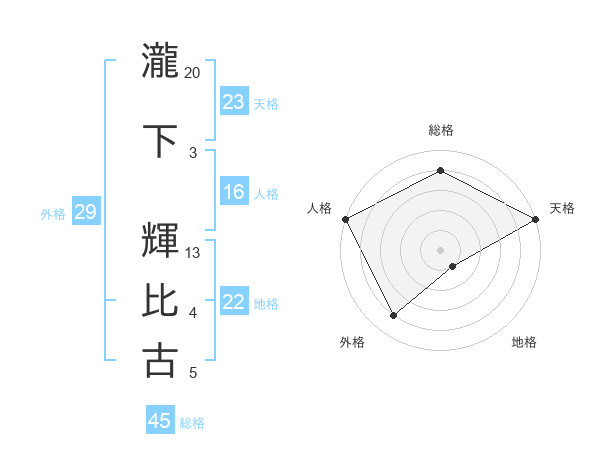 瀧下 輝比古さんの天格は23画の5点!