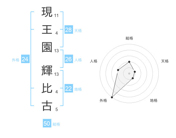 現王園 輝比古さんを姓名の画数から五運を鑑定