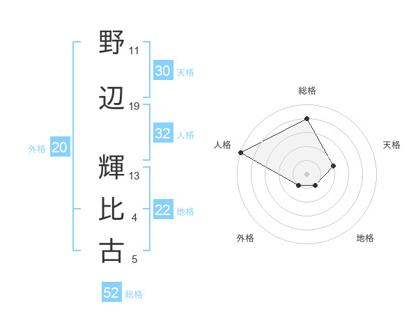 野辺 輝比古さんの総格は52画の4点!