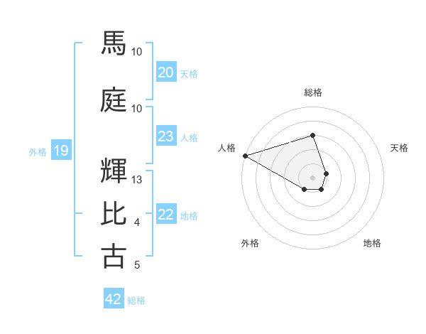 馬庭 輝比古さんを姓名の画数から五運を鑑定