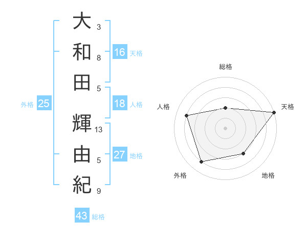 大和田 輝由紀さんを姓名の画数から五運を鑑定