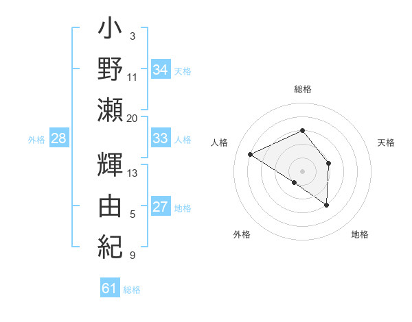小野瀬 輝由紀さんを姓名の画数から五運を鑑定