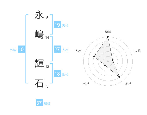 永嶋 輝石さんを姓名の画数から五運を鑑定