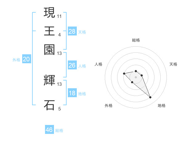 現王園 輝石さんを姓名の画数から五運を鑑定