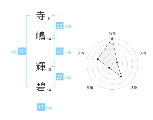 寺嶋 輝碧さんを姓名の画数から五運を鑑定
