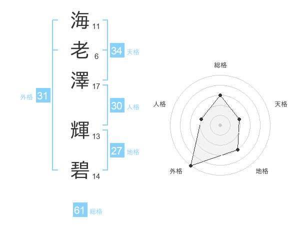 海老澤 輝碧さんを姓名の画数から五運を鑑定