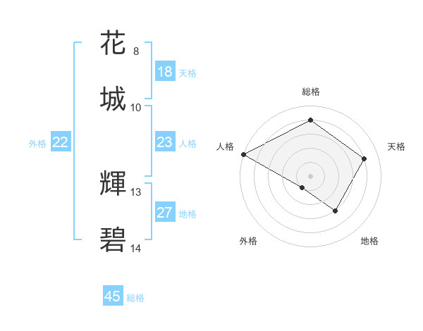 花城 輝碧さんの総格は45画の4点!