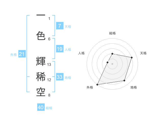 一色 輝稀空さんを姓名の画数から五運を鑑定