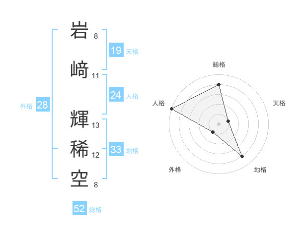 岩﨑 輝稀空さんの総格は52画の4点!