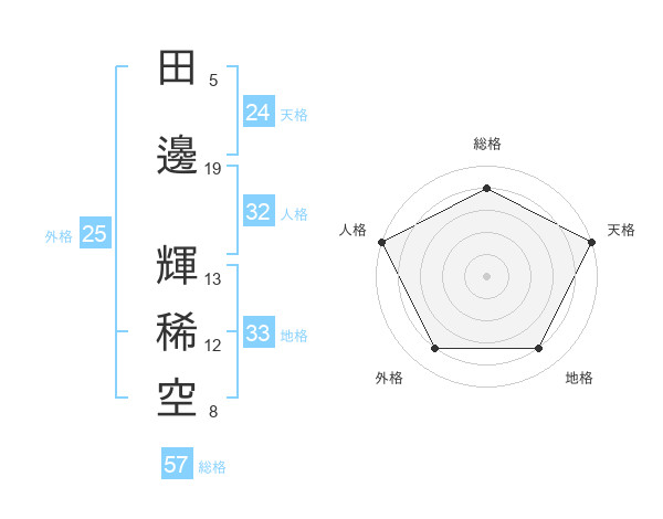 田邊 輝稀空さんを姓名の画数から五運を鑑定