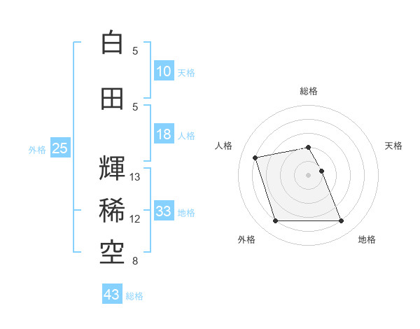 白田 輝稀空さんを姓名の画数から五運を鑑定