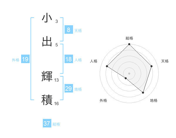 小出 輝積さんの総格は37画の5点!