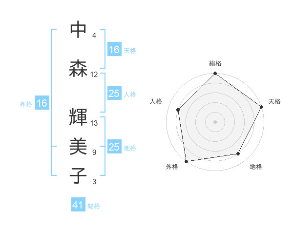 中森 輝美子さんを姓名の画数から五運を鑑定