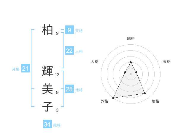 柏 輝美子さんの総格は34画の2点!