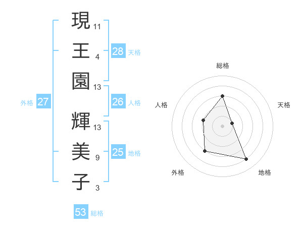 現王園 輝美子さんを姓名の画数から五運を鑑定