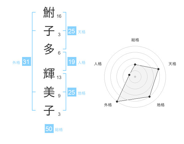 鮒子多 輝美子さんを姓名の画数から五運を鑑定