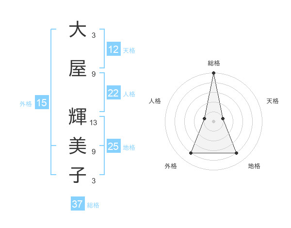 大屋 輝美子さんを姓名の画数から五運を鑑定