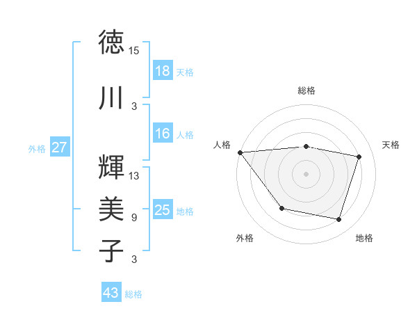 徳川 輝美子さんを姓名の画数から五運を鑑定