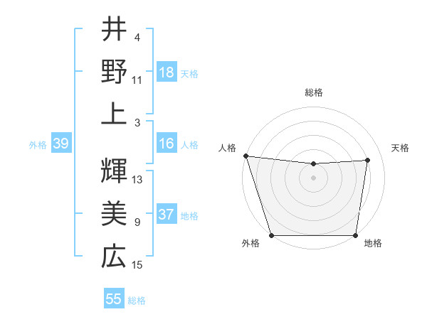 井野上 輝美広さんの外格は39画の5点!