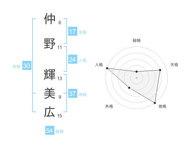 仲野 輝美広さんを姓名の画数から五運を鑑定