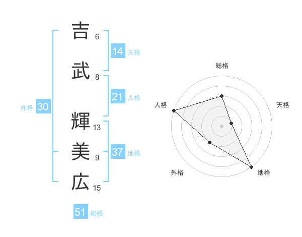 吉武 輝美広さんを姓名の画数から五運を鑑定