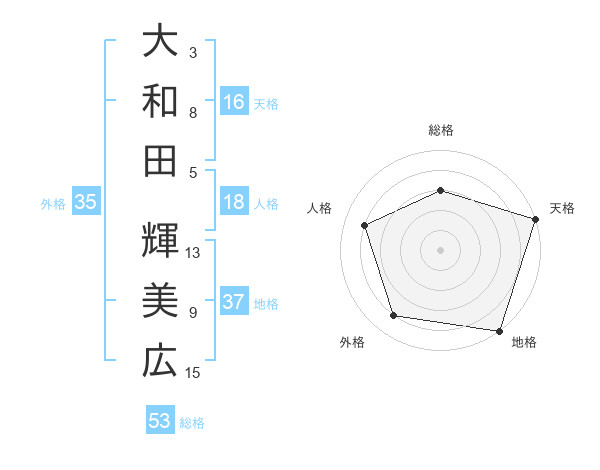 大和田 輝美広さんを姓名の画数から五運を鑑定