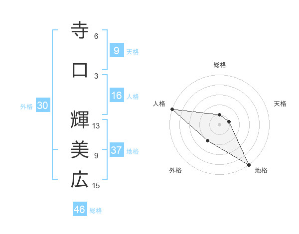 寺口 輝美広さんの地格は37画の5点!