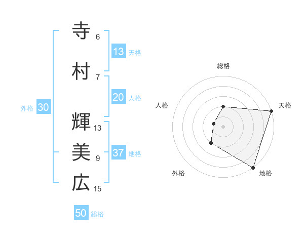 寺村 輝美広さんを姓名の画数から五運を鑑定
