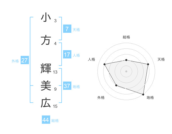 小方 輝美広さんを姓名の画数から五運を鑑定