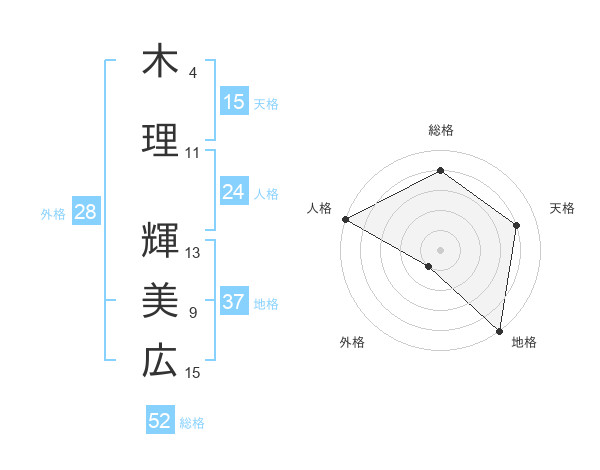 木理 輝美広さんを姓名の画数から五運を鑑定