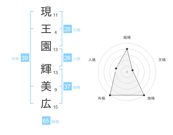 現王園 輝美広さんの総格は65画の4点!