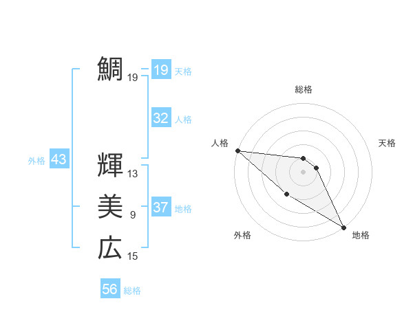 鯛 輝美広さんを姓名の画数から五運を鑑定