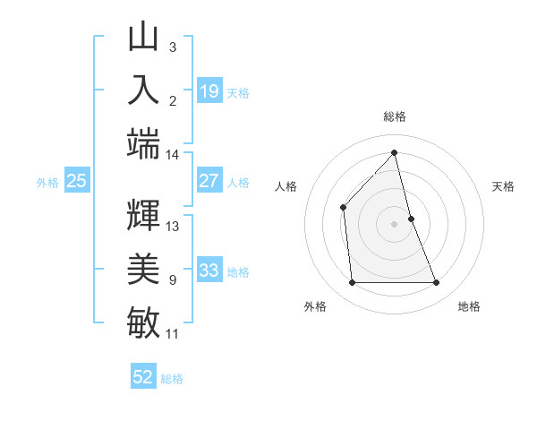 山入端 輝美敏さんの総格は52画の4点!