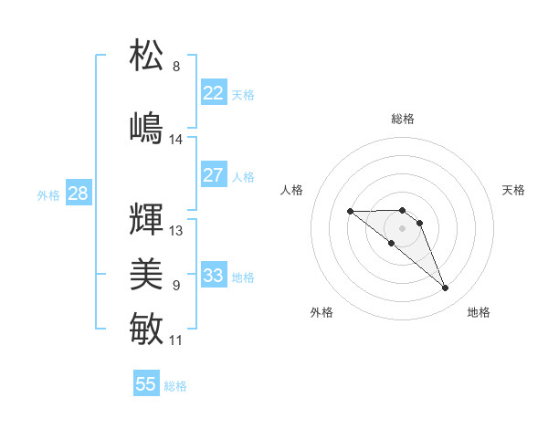 松嶋 輝美敏さんの天格は22画の1点!