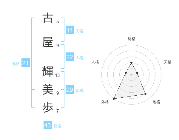 古屋 輝美歩さんを姓名の画数から五運を鑑定