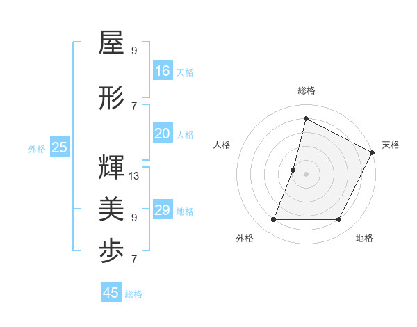 屋形 輝美歩さんを姓名の画数から五運を鑑定