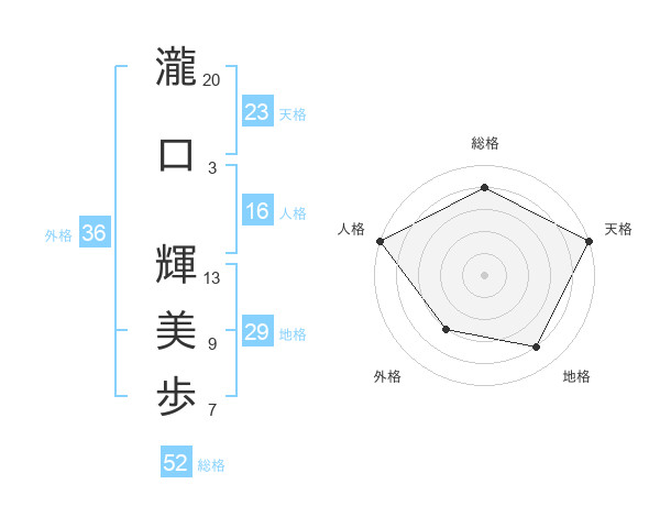瀧口 輝美歩さんの天格は23画の5点!