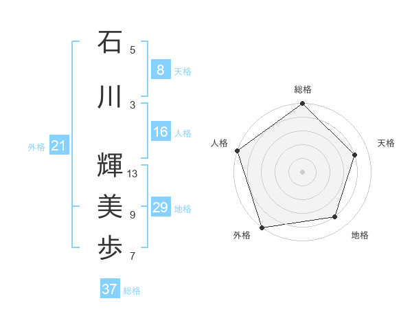 石川 輝美歩さんを姓名の画数から五運を鑑定