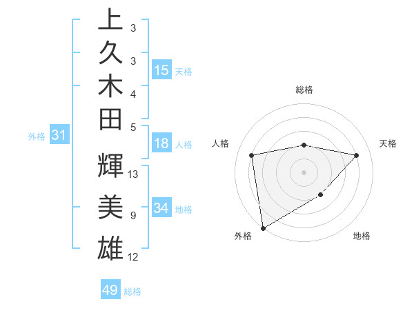 上久木田 輝美雄さんを姓名の画数から五運を鑑定