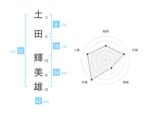 土田 輝美雄さんを姓名の画数から五運を鑑定
