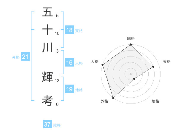 五十川 輝考さんの総格は37画の5点!