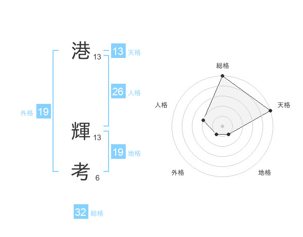 港 輝考さんの天格は13画の5点!