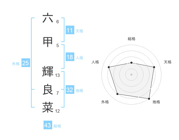 六甲 輝良菜さんを姓名の画数から五運を鑑定