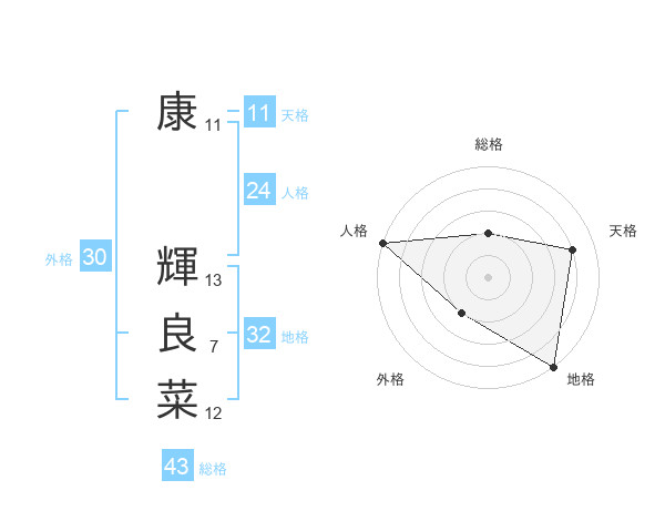 康 輝良菜さんを姓名の画数から五運を鑑定