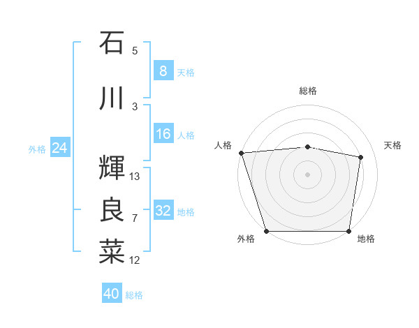 石川 輝良菜さんの総格は40画の2点