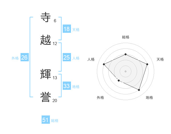 寺越 輝誉さんの総格は51画の3点!