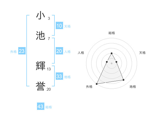 小池 輝誉さんの総格は43画の2点!