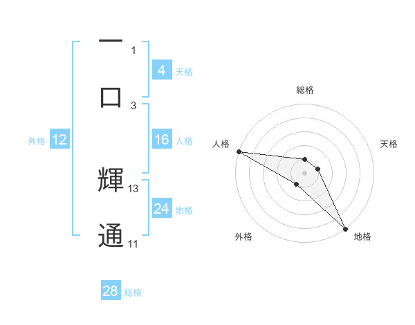 一口 輝通さんの総格は28画の1点!