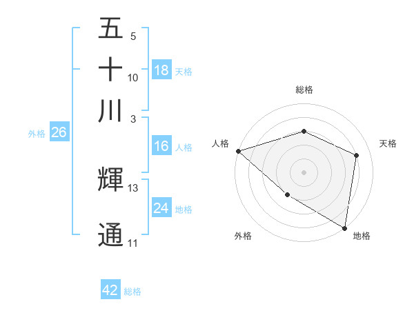 五十川 輝通さんを姓名の画数から五運を鑑定
